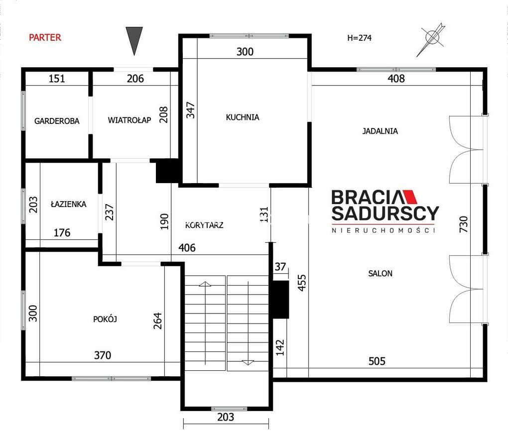 Wystawa okien - pokoje : Pn, Pd, Wsch, Zach |